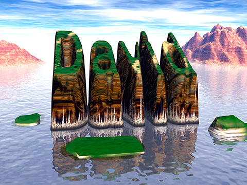 And of course... I animated it. Just imagine this with some epic soundtrack playing as you zoom out across the water towards what appear to be a few small islands and then [musical fanfare] my name rises up from the water: